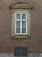 The rich sandstone decorations, with elephants, lion's heads and flowering vines, and the balustrade with sculptures date from Krieger's alterations.[6]