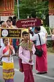 Mon National Day is currently not recognized by the Burmese national government as a national holiday. However, in 2013, the Mon State Government expressed interest in organizing celebrations for the holiday.[6] That same year, Aung San Suu Kyi, the country's de facto leader, spoke at large-scale Mon National Day celebrations held at Yangon's People's Square and Park.[7] In 2016, activists and festivity organizers petitioned the national government to observe Mon National Day as a public holiday.[8][9] Since 2017, the Mon State Government has earmarked funding for state-wide Mon National Day celebrations.[10] In 2018, Mon and Kayin State Governments jointly earmarked funding for inaugural Mon National Day celebrations in Kayin State.[11]