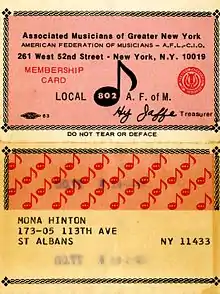Mona Hinton's AFM Card (1982-83), from the Milton J. and Mona C. Hinton Collection, Oberlin Conservatory Library special collections