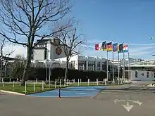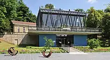 After a quiet period during the First World War, a new spa centre designed by architect Paul Wigreux was opened in 1926. In the 1930s, the hotels were occupied not by visitors interested in the waters but by émigrés from Nazi Germany. At the same time it was visited by Polish pianist Arthur Rubinstein. During the Second World War, well-to-do Nazis enjoyed relaxing at "Staatsbad-Mondorf", far away from the bombing and fighting. In 1945, Mondorf's Palace Hotel became Camp Ashcan, a prisoner-of-war camp for senior Nazi dignitaries who awaited trials at Nuremberg.[3] During the Allied occupation, that lasted until September 1945, there was no permission to transit in the town from 7 pm to 7 am.[4] The spa continued to prosper in the second half of the 20th century with an outdoor swimming pool (1953), a new thermal centre (1988), and the Casino 2000 which opened in 1983.[2][5]