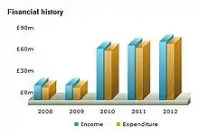 The vast majority of the association's income comes from the profit it makes on its trading businesses, for instance subscriptions to Which? magazine, which are donated to the campaigning part of the organisation to fund advocacy activity and inform the public about consumer issues. Which? magazine maintains its independence by not accepting advertising, and the organisation receives no government funding.[1][2] The Consumers' Association is the largest consumer organisation in the UK, with over 573,000 subscribers to its magazine.[3]