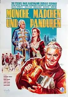 Monks, Girls and Hungarian Soldiers (German: Mönche, Mädchen und Panduren) is a 1952 West German historical adventure comedy film directed by Ferdinand Dörfler and starring Joe Stöckel, Paul Hartmann and Rudolf Fernau.[1] It was made at the Bavaria Studios in Munich. The film's sets were designed by Ludwig Reiber. Some shooting was also done at Nymphenburg Palace.