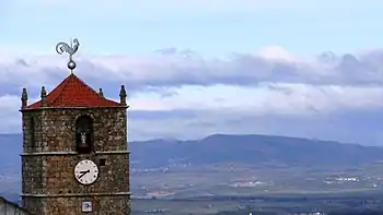 It was the main town of the concelho between 1174 and the beginning of the 19th century, and the county seat in the period of 1758-1853. The mountain Monsanto (Latin: Mons Sanctus) rises abruptly to the East of the Idanha-a-Nova up to 758 meters above sea level. The earliest traces of man is from the Early Stone Age, dating back to the ice ages. Later, Romans settled at the base of the mountain. Traces from Visigothic in the early Middle Ages and even earlier Arab presence have been found in the area. In the 12th century, King Afonso I of Portugal conquered Monsanto from the Moors as part of the Christian Reconquista. In 1165, he granted the custody of the city to a knights' order of the church, first to the Order of the Knights Templar, and later to the Order of Santiago. The city was given to the military orders to maintain the reconquered city within Christian hands. The Grand Master of the Order of the Knights Templar, Gualdim Pais, was manager of the building of the fortress. Later, King Sancho I of Portugal reconstructed and repopulated it after the wars with the Leonese. Unfortunately, the medieval castle was destroyed in the nineteenth century because of an explosion in the ammunition depot of the castle. Monsanto would become popularly known as "the most Portuguese village of Portugal" due to a government-sponsored competition that awarded Monsanto this distinction in 1938. The title was awarded by the Portuguese Secretariat for Propaganda under the Estado Novo regime.[1] A symbol of Portugal, the Silver Rooster (Galo de Prata), designed by Abel Pereira da Silva, was the coveted trophy in this competition and can be seen atop the Clock Tower or Lucano Tower of Monsanto. In 2013, the parish evolved into the new parish Monsanto e Idanha-a-Velha.[2]