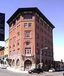 The building was gutted by an arson fire in April 1903 set by the bartender's son and was declared a total loss by the club's Wall Street, New York City insurance company.[2][3] Members hastily contracted with St Paul/New York City architect Cass Gilbert, assisted by George H. Carsley, to replicate the old clubhouse's floor plan but to add a rathskeller and dining room or banquet hall. Contrary to popular myth and erroneous information, the granite arches were totally dismantled, inventoried and set aside for potential incorporation into the new structure. The new building was constructed using brick manufactured by the Western Clay Mfg. Co. (Kessler Brick Co.) west of downtown, recycling some of the granite from the razed clubhouse, augmented with new granite from the nearby Baxendale quarry.