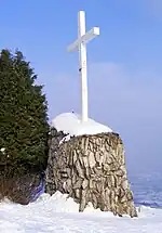 The shortest hiking way to attain the mountain is the footpath which starts from "Tre castelli" (Piossasco) and, after crossing a place named "Croce dei Castelli" (450 m), reaches the summit through its sunny South ridge.[6] Another footpath connects Piossasco with Monte San Giorgio through the small church of San Valeriano, and can be used on the way back in order to form an hiking loop. Other hiking itineraries cross the mountain; among them the David Bertrand footpath, devoted to the memory of a young volunteer fireman fallen on duty during a wood-fire.[7]