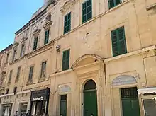 1. 1 2 3 4 5 6 7 8 Denaro, Victor F. (1958). "Houses in Merchants Street, Valletta" (PDF). Melita Historica. 2 (3): 161–164. Archived from the original (PDF) on 4 March 2016.