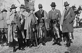 Attire is one of the most characteristic aspects of a traditional Spanish montería, one that sets it aside from its European counterparts. Essentially, Spanish goods and garments predominate, although British country clothing, Tyrolean hats and Austrian jankers are also prevalent.[39] There is a current stream of critics that argue that technological advances have led way to modern and more 'practical' attires e.g. camouflage and synthetic fibers, that put the heritage of monterías at risk, stressing the importance of respecting a minimum dresscode when at a montería.[40][41][42]