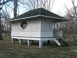 Monterey Bandstand, also known as Kleckner Park Bandstand, is a historic bandstand located at Monterey, Pulaski County, Indiana. It was built in 1912, and is a wood-frame structure measuring 12 feet, 6 inches, wide, and 20 feet long. It is raised on 30 inch high piers. The building has a hipped roof and exhibits Queen Anne style design elements. The bandstand was restored in 1979.[2]: 3