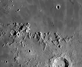 Montes Carpatus is a mountain range that forms the southern edge of the Mare Imbrium on the Moon. The selenographic coordinates of this range are 14.5° N, 24.4° W, and the formation has an overall diameter of 361 km (224 mi). They were named by astronomer Johann Heinrich von Mädler after the Carpathian Mountains in Central Europe.[1]