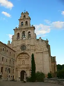 The monastery was initially founded on a different site called Montesacro in about 1146 by Domingo Gómez, illegitimate son of Queen Urraca of León and Castile and her lover Count Gómez González de Candespina. Domingo had become interested in the Praemonstratensian order on a visit to France, and this was the first Praemonstratensian house in Spain.[1] The monastery was then moved to its present site in 1152, having been given the estate of La Vid by Alfonso VII of León and Castile, who was the half-brother of Domingo Gómez.