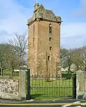 First mentioned in 1233 this was the medieval church dedicated to Saint John the Baptist, patron saint of Ayr.[20] The church was used by Cromwell's soldiers as a look-out tower as well as an armoury and chapel, the congregation had been forced out and the Auld Kirk of Ayr came to be built to house them with some financial assistance from Cromwell.[20] The 'Citadel' church was in public use again between 1687 and 1689,[16] after which it ceased to be used for worship and much of it was demolished, the tower itself only being spared as it was a valuable sea-mark for sailors and a look-out for ships.[21]