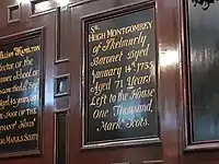 Dedication to the last Skelmorly baronet, Hugh, located in the Merchant's house, Glasgow