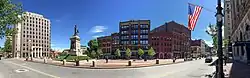 Monument Square is a town square in downtown Portland, Maine, about halfway between the East Bayside and Old Port neighorhoods. The Time and Temperature Building, Fidelity Trust Building, and the main branch of the Portland Public Library are on Congress Street across from the square, while One Monument Square and One City Center are among the buildings on the square itself.