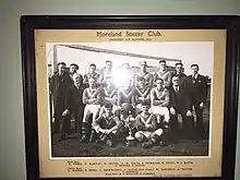 In 1934 Moreland Soccer Club was formed by a breakaway from what was then known as the Brunswick Soccer Club and trophy success came to Moreland early in its history.[1]