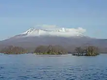Mori, along with the town of Nanae, shares a coastline on Lake Ōnuma (5.3 square kilometres (2.0 sq mi)). Ōnuma, connected to Lake Konuma in Nanae, is technically a shallow pond. Ōnuma and Konuma, which sit at the southern foot of Mount Komagatake, were created when mudflows from an eruption of the mountain dammed the Orito River.[9][10]