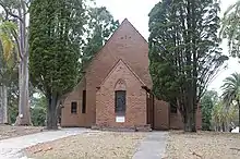 A cemetery formerly associated with the Hospital is off Nentoura Road, Morisset on an isolated bushland site. Its Anglican section has a lych gate and the oldest headstone is dated 1911. The cemetery has been managed by Lake Macquarie City Council since c. 1974. Older sections of the cemetery are set aside in General, Catholic, Anglican, and Uniting (Presbyterian/Methodist) rows. There are many unmarked graves of patients from the Morisset Hospital buried throughout the eastern side of the cemetery.[6] This cemetery has a Memorial Wall, made of grey granite with a large black granite memorial plaque with a dedication to the former Morisset Hospital patients who are buried in unmarked graves in the cemetery. It also has spaces available for filling on either side for families wishing to memorialise their relatives individually.[7][1]