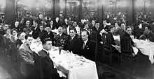 After Bolshevik supporters organized by Leonid Krasin obtained BCEN-Eurobank in Paris as the first overseas Soviet bank,[7] he, as head of the Centrosoyuz mission, which was formed on 24 February 1920 and was an attempt by the Bolshevik's Council of People's Commissars to break through the trade and political blockade of Bolshevist Russia by Western countries, travelled to London, met with British authorities beginning on 31 May 1920, and established a "Soviet House" or "Russia House" at 49 Moorgate in London,[8] which was known as the All-Russian Cooperative Limited Liability Company "ARCOS" (Russian: ООО Всероссийское Кооперативное Общество, «АРКОС») and supported Bolshevik control of the Moscow Narodny Bank (London), which had formed in October 1919, through Centrosoyuz, as the next Soviet bank located overseas.[7][9][lower-alpha 1]