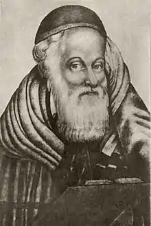 Moshe Teitelbaum (Yiddish: משה טייטלבוים; 1759 – 17July 1841), also known as the Yismach Moshe, was the Rebbe of Ujhely (Sátoraljaújhely) in Hungary. According to Leopold Löw, he signed his name "Tamar", this being the Hebrew equivalent of Teitelbaum, which is the Yiddish for "date palm" (compare German "Dattelbaum").[1] An adherent of the Polish Hasidic rebbe Yaakov Yitzchak of Lublin as well as of Sholom Rokeach of Belz,[2] Teitelbaum was instrumental in bringing Hasidic Judaism to Hungary. Though initially opposed to Hassidism, after his son-in-law introduced him to Jacob Isaac Horowitz, he soon became an adherent.[3]