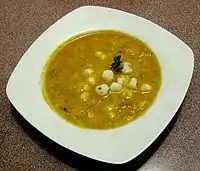 Mote (from Quechua: mut'i, through Spanish mote) is the generic name for several varieties of boiled grains, consumed in many regions of South America. It is usually prepared by boiling the grains in water made alkaline by the addition of ashes or lime, a process known as nixtamalization.