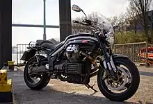 - Griso 1100 (1,064 cc) (since 2005): literally "gray one", named after a gray-bearded character in the famous Italian literature saga The Betrothed—a riding posture between sport and standard; first saw light as a prototype at EICMA 2003 in Milan, when Moto Guzzi was still owned by Aprilia. After Piaggio absorbed Moto Guzzi, they proceeded (in house) to quickly develop the Griso for production, adapting Guzzi's historic V-twin engine to the new bike. In keeping with the bike's hard-edged, techno-custom styling, an oversized oil radiator graces the right side of the engine, in plain view.[4]