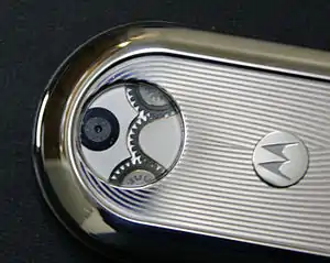 The Motorola Aura (styled AURA) is a series of luxury mobile phones from Motorola, which is part of the 4LTR line. The series was announced in October 2008 and made available for purchase by December of that year. Though originally intended to be a series, only one phone, the Aura R1, was ultimately released. However, three additional special editions of the Aura R1 were released throughout 2009: the Aura Diamoniqe Edition, Aura Celestial Edition and Aura Diamond Edition. The Aura was marketed as a luxury device, with a price tag of US$2000. It was made from premium materials such as stainless steel and sapphire, in order to appeal to a larger audience and was packaged in a wooden box.