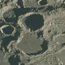 Moulton is a crater on the Moon's far side, just beyond the south-southwestern limb as seen from the Earth. The crater is attached to the southern edge of Chamberlin, and it lies at the northern terminus of the Vallis Schrödinger. There is a cleft in the shared rim between Chamberlin and Moulton.