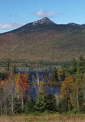 Mount Chocorua (/ʃəˈkɔːrwə/) is a 3,490 ft (1,060 m) mountain in the White Mountains of New Hampshire, the easternmost peak of the Sandwich Range. Although the mountain is not outstanding for its elevation, it is very rugged and has excellent views of the surrounding lakes, mountains, and forests. Being at the end of the range, its bare summit can be seen from almost every direction and identified from many points throughout central New Hampshire and western Maine, and it has been the subject of numerous works of art. Many hiking trails ascend the mountain. Scenic Chocorua Lake lies directly to the south.