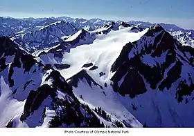 Mount Christie is high peak in the Olympic Mountains of Washington in Olympic National Park. Mount Christie is located in the Queets-Quinault group. Precipitation on Mt. Christie drains into the Elwha River on the north side, and into the Quinault River on the south side. The mountain was named to honor James Halbold Christie, who was the leader of the Seattle Press Expedition which first explored the unknown interior of the range in 1889–1890. The massif has several peaks, and the large Christie Glacier resides in the north cirque below the main summit.[3]
