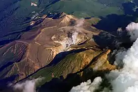 Mount Meakan (雌阿寒岳, Meakan-dake) is an active stratovolcano located in Akan National Park in Hokkaidō, Japan. It is the tallest mountain in the Akan Volcanic Complex.[1] The volcano consists of nine overlapping cones that grew out of the Akan caldera, on the shores of Lake Akan. Mount Meakan has a triple crater at its summit. According to its name and local legend, Mount Meakan is the female counterpart to Mount Oakan on the other side of Lake Akan.[1]