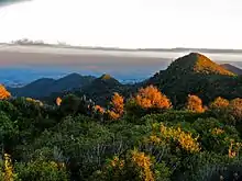Mount Pirongia is an extinct stratovolcano located in the Waikato region of New Zealand's North Island. It rises to 959 m (3,146 ft) and is the highest peak in the Waikato region. Pirongia's many peaks are basaltic cones created by successive volcanic eruptions between the late Pliocene and early Pleistocene, about 2.5 million years ago.[2] In the adjacent picture, the characteristic profile of the mountain can be seen, along with a prominent accessory cone to the right (on the northern flank).
