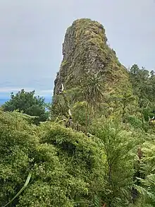 The Tirohanga Track skirts the foot of the hornblende andesite dike
