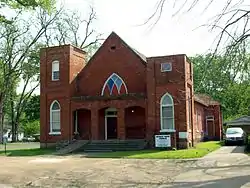 Mount Zion Missionary Baptist Church is a historic church at 409 S. Main Street in Brinkley, Arkansas. It is a red brick building with front facing gable roof, and a pair of square towers flanking the main structure. The left tower is slightly taller, an intentional element of the design that was maintained when one tower had to be shortened by removing of its belfry. The towers are joined by a three-bay porch sheltering the building's main entrance. The church was built in 1909 for an African-American congregation established in 1886, and has been a major cultural focus for that community since.[2]