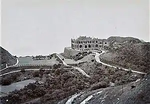 A military sanatorium was proposed and established by Governor Hercules Robinson (1859–1865).[1] A path was cut in December 1859 from what is now Robinson Road to the top of Victoria Peak, and the sanatorium was opened in the spring of 1862. It was well-built on the plateau below the flag-staff and 17 patients were sent there. However, the patients, like those in the rest of Hong Kong that year, did not improve and the military abandoned the site.