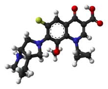 - ↑ Nightingale CH (March 2000). "Moxifloxacin, a new antibiotic designed to treat community-acquired respiratory tract infections: a review of microbiologic and pharmacokinetic-pharmacodynamic characteristics". Pharmacotherapy. 20 (3): 245–256. doi:10.1592/phco.20.4.245.34880. PMID 10730681. S2CID 11448163.