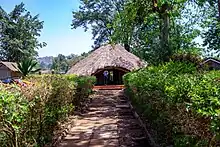 The Mparo royal tombs is a round-grass thatched huts with reeds having wooden doors guarded by royal guards.[1][6]
