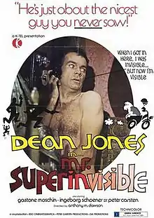 Mr. Superinvisible (Italian: L'inafferrabile invincibile Mr. Invisibile, also known as Mr. Invisible and The Unseizable Invincible Mr. Invisible) is a 1970 Italian fantasy-comedy film directed by Antonio Margheriti.[3][4][5] It was released in the United States as the first film of the K-Tel company.