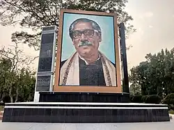 Mritunjoyi Mujib (lit.'Deathly Mujib') is a mural created in 2018 by Kanak Kumar Pathak. It is located on the campus area of the Islamic University, Bangladesh.[1] It is a remarkable mural or portrait wall painting commemorating Sheikh Mujibur Rahman, the founder and the first president of Bangladesh.[2][3]