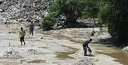 ![]() Msimbazi River bed being exploited for sand and used a trash dump in backgorund | |