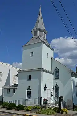 Mt. Tabor Baptist Church, also known as Big Levels Baptist Church, Lewisburg Baptist Church, and Mount Tabor Church, is a historic Baptist church at Court and Foster Streets in Lewisburg, Greenbrier County, West Virginia. It was built in 1832, and is a 1+12-story, brick meeting house building with Gothic style design elements. It measures 36 feet long by 40 feet wide and sits on a thick limestone foundation. It features a 10 feet by 16 feet frame tower, topped with an octagonal cap and belfry.[2]