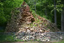 Mt. Torry Furnace, also known as Virginia Furnace, is a historic iron furnace located at Sherando, Augusta County, Virginia. It was built in 1804, and is a stone square trapezoid measuring 30 feet at the base and 40 feet tall. The original cold-blast charcoal stack was converted for hot blast in 1853. It shut down in 1855, then was reactivated in 1863 to support the Confederate States Army. The furnace was destroyed in June 1864 during the American Civil War by Brigadier General Alfred N. Duffié, then rebuilt in January 1865. It operated until 1884.[3]