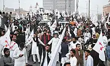 Festivals celebrated by Muhajirs include religious, political, ethnic, and national festivals. Islamic festivals which are celebrated by Muhajirs include Eid-al-Fitr celebrated to mark the end of the month-long dawn-to-sunset fasting of Ramadan, Eid-al-Adha to honour the willingness of Abraham (Ibrahim) to sacrifice his son Ishmael (Ismail) as an act of obedience to God's command, and Ashoura to mourn the death of Husayn ibn Ali and celebrate the day of salvation for Moses and the Israelites from Biblical Egypt.[63] Political celebrations include MQM Founding Day celebrated to mark the founding of the first Muhajir nationalist party Muttahida Qaumi Movement, believed to be the architect of Muhajir identity, and APMSO Founding Day celebrated to mark the founding of the first Muhajir nationalist student union All Pakistan Muhajir Students Organization.[64][65][66] Muhajirs celebrate Muhajir Cultural Day as an ethnic and cultural festival.[67] To celebrate this day, rallies depart from all areas of Karachi to Mazar-e-Quaid, and political parties and civil society organisations set up their camps to welcome participants in the rally and to express solidarity.[68]