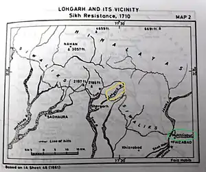 map showing Lohgarh and Muklishgarh - Irfan Habib's book Sikh history from Persian sources