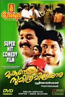 Mukunthetta Sumitra Vilikkunnu (transl. Mukunthetta, Sumitra is calling) is a 1988 Indian Malayalam-language romantic comedy film directed by Priyadarshan and written by Sreenivasan. It stars Mohanlal, Sreenivasan, and Ranjini. The story is based on the Marathi play Sasa Aani Kasav (Hare and Tortoise), which was earlier adapted into the 1983 movie Katha.