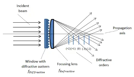 A multifocal diffractive lens is a diffractive optical element (DOE) that allows a single incident beam to be focused simultaneously at several positions along the propagation axis.[1]