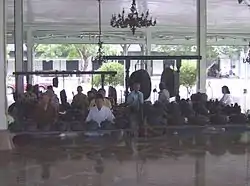 Gamelan Munggang are considered among the most ancient gamelans of the kraton (courts) of central Java. The ensemble of instruments consists of gong ageng, kempul, kendang and horizontal gong chimes tuned to three pitches. Very low in absolute pitch, each ensemble consists of two types: pelog and slendro.[1] There is a repertory of several repetitive pieces, the best known permutation being high-middle-high-low. It is theorized that pelog was derived from the three note munggang scale.[2] The origin of the munggang ensembles themselves are described in Javanese myths, however the first one may have been imported to Indonesia in the first century CE, with the first ensemble constructed by the Javanese made in the 4th century.[1]