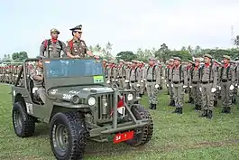 The Satuan Polisi Pamong Praja (Indonesian: Polisi Pamong Praja, lit. 'Public Servants Police or Country / City Administrators Police',[1] or translated as "Public Order Enforcers[2] Police" or simply 'Municipal Police',[3] abbreviated as Satpol PP, Pol-PP, or PolPP), are municipal police units throughout Indonesia which are under the control of the local governments of each province, city, and regency (Kabupaten). Its purpose is to assist regional heads (provincial governors, city mayors and/or regents) in enforcing regional regulations and administering public order and public security, the Satpol PP is formed in every province, city, and/or regency.[4] It is under the auspices of the Ministry of Home Affairs.[5]