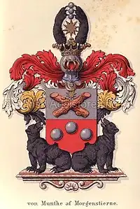 The Von Munthe af Morgenstierne family is a Danish and a Norwegian noble family living in Norway and The Netherlands. It descends from Bredo Munthe of Bekkeskov, who on 19 December 1755 was ennobled under the name von Munthe af Morgenstierne. The family is included in the Yearbook of the Danish Nobility.[1][2]