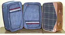 The parts of her body and that of her unborn daughter had been placed into three suitcases; two were striped with red, blue, and white, and the other one was tan with a plaid design.[2][14] They were of vinyl material and were all of the same size.[15][16] It was evident that the suitcases had been spray-painted black at some point and that their handles had been severed.[14][17][18]