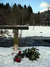![]() Flowers at the river Dreisam where the body was found | |