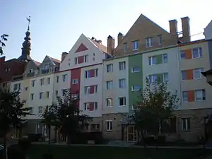 The village is divided into two main parts – the older part of the village to the north, centred on the market square and St. James' church, and the modern estate of Zielone Wzgórza to the south, consisting mainly of blocks of flats and houses built since 1983.